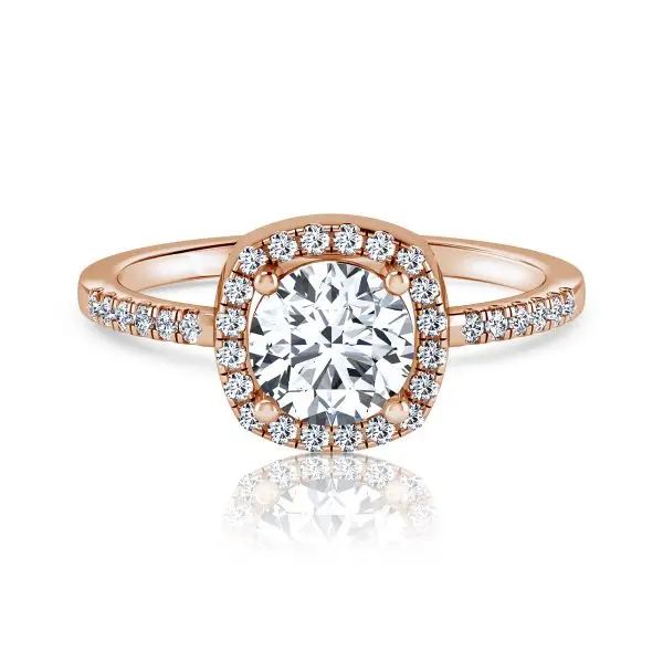 העיצוב הריבועי המעוגל מדגיש את קווי המתאר של היהלום המרכזי, ומגביר את אפקט הזוהר וההילה היוקרתית המרהיבה.