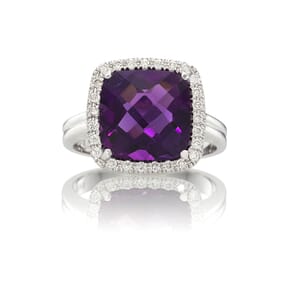 טבעת מרהיבה משובצת במרכזה באבן אמטיסט טבעית במשקל 3.50 קרט בעלת גוון סגלגל עז, ומסביבה יהלומים קטנים ומנצנצים. משדרת מראה צעיר ואנרגטי.