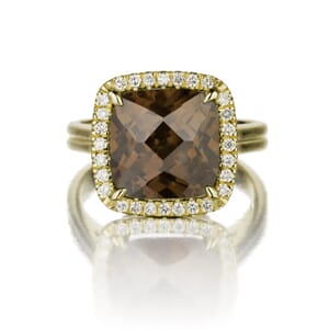 טבעת אריסטוקרטית זהב צהוב, משובצת במרכזה באבן טופז טבעית במשקל 5 קרט, ומסביבה יהלומים קטנים ומנצנצים. משדרת מראה מכובד ויוקרתי.