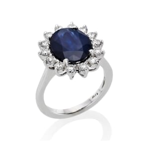 משובצת במרכזה באבן ספיר, ומעוטרת סביבה ביהלומים לבנים ובוהקים.