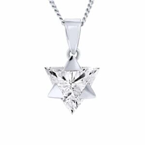 תליון יהלומים משולשים מעוצבים בצורה גיאומטרית בעבודת אמנות מדויקת ומדהימה ביופיה.