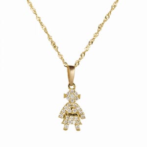 תליון ילדה זהב משובץ יהלומים בעיצוב אלגנטי עדין ומיוחד.