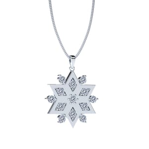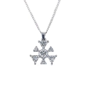 תליון יהלומים מעוצב מגן דוד פתית שלג בזהב לבן.