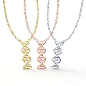 תליון יהלום DNA אופנתי ייחודי ומדהים, משובץ בזוג יהלומים איכותיים ונוצצים.